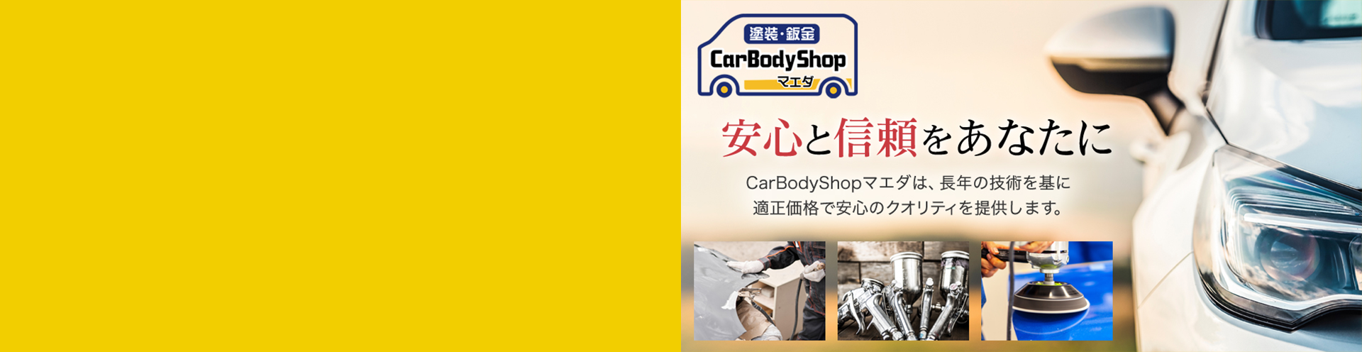 Car Body Shop 前田は、兵庫県姫路市にて自動車の板金・塗装を専門に手がける工場です。
